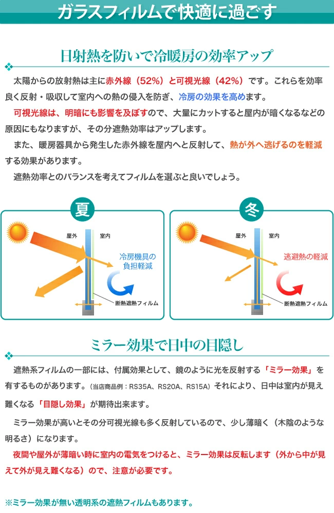 遮熱フィルム 窓 RS50M オーダーカット 遮光シート 窓 ガラスフィルム 暑さ対策 UVカット 飛散防止フィルム 弱ミラー